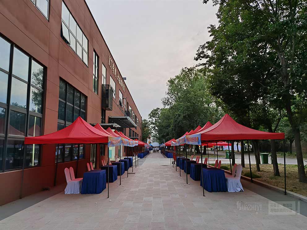 鄭州篷房出租廠家的專業(yè)團隊還為雙選會現(xiàn)場提供了全方位的服務(wù)支持。從篷房的搭建、布置到后期的拆除、清理,華熠都嚴格把控每一個細節(jié),確保整個活動的順利進行。同時,華熠現(xiàn)場人員還為現(xiàn)場提供了專業(yè)的照明、音響等設(shè)備,讓雙選會現(xiàn)場的氣氛更加熱烈、溫馨。