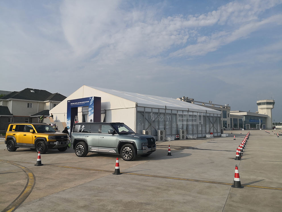 鄭州篷房租賃廠家憑借其在會展物料租賃領域的深厚積累,為比亞迪車展定制了篷房解決方案。玻璃篷房不僅具有美觀大方的外觀,還具備優良的通風和采光性能,為車展提供了很好的展示環境。此外,華熠廠家還根據車展的主題和風格,對篷房進行了精心裝飾,使其與比亞迪的品牌形象相得益彰。