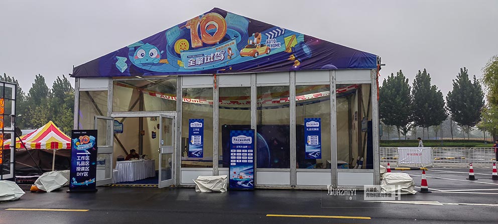 活動現場,一座寬敞明亮的篷房拔地而起,不僅有效抵御了夏日炎炎的烈日,更為試駕活動營造了一個既專業又舒適的環境。篷房內部分區明確,既有展示區讓嘉賓近距離感受新車魅力,也有試駕體驗區讓參與者親身駕馭,感受速度與激情。此外,篷房的外墻裝飾與汽車之家的品牌形象完美融合,彰顯出品牌的高端與格調。