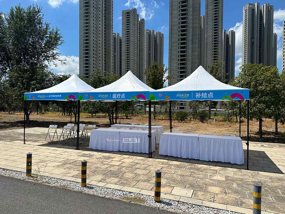 在充滿活力的漢馬小勇士親子障礙越野賽賽場(chǎng),菏澤篷房出租以實(shí)用且靈活的布置,將白色簡(jiǎn)易帳篷打造成賽事的“功能補(bǔ)給站”。這些帳篷,分別承擔(dān)著醫(yī)療點(diǎn)、補(bǔ)給點(diǎn)、水槍回收處等關(guān)鍵角色,在賽場(chǎng)中筑起一個(gè)個(gè)高效又溫馨的服務(wù)空間,為親子家庭的越野挑戰(zhàn)保駕護(hù)航。