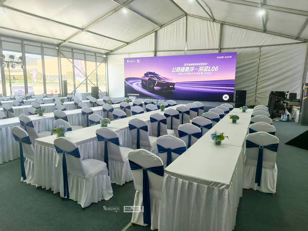 深藍L06體驗營鄭州站的核心場地布置由臨汾晉城篷房租賃公司全程助力,其定制化的玻璃篷房及配套物料,不僅完美契合深藍品牌的科技調性,更讓參與者感受到沉浸式的體驗氛圍。而臨汾晉城篷房出租這項優質業務,正是由鄭州華之熠廣告有限公司傾力打造,為各類大型活動提供可靠的場地解決方案。