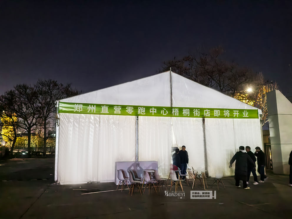 周口篷房租賃深入洞察零跑汽車簡約、科技的品牌內核,為此次臨時展蓬搭建白色人字形篷房。經典的人字形結構線條流暢利落,不僅最大化拓展了內部展示空間,實現無立柱遮擋的通透布局,讓多款零跑車型能有序陳列,方便消費者自由觀賞、近距離體驗車輛細節(jié);純凈的白色篷布更是點睛之筆,既與零跑汽車的品牌視覺風格高度契合,又能反射陽光讓篷房內光線充足柔和,清晰呈現車輛的外觀設計與內飾質感,同時在梧桐街的戶外環(huán)境中極具辨識度,輕松吸引過往行人目光。