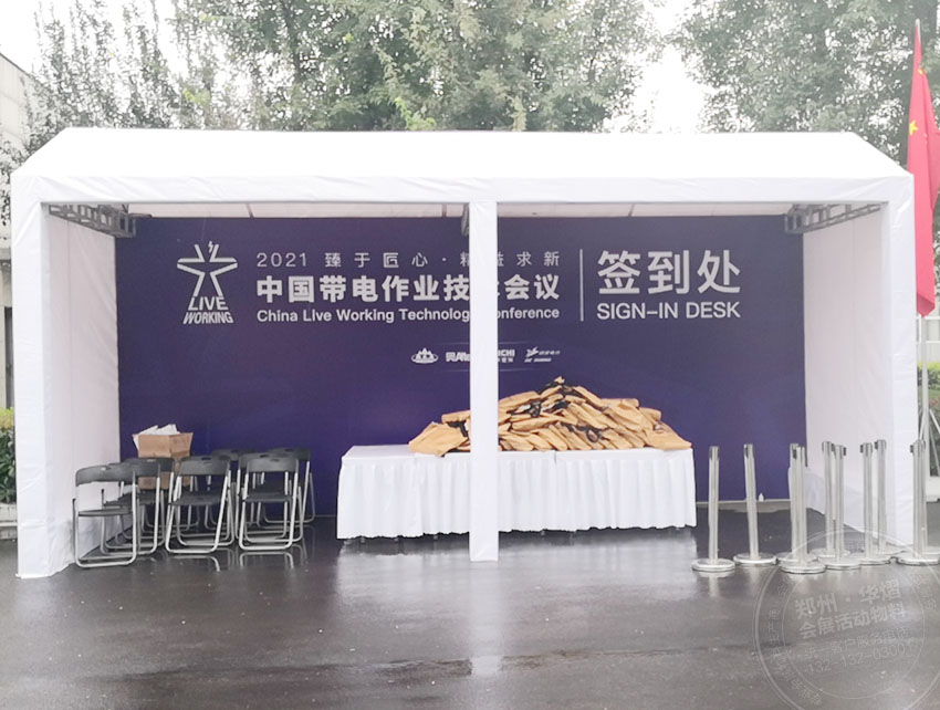 華熠鄭州篷房租賃公司以十多年的戶外搭建經(jīng)驗(yàn),此次會(huì)議活動(dòng)僅用了一天之內(nèi)的時(shí)間就能把現(xiàn)場(chǎng)搭建完畢,省時(shí)省心又省力,更主要的是方便快捷,能夠給主辦方減少不必要的成本輸出,更好的能夠簡單而又不失內(nèi)涵的體現(xiàn)在參會(huì)人員的面前。更好的完成中國帶電作業(yè)技術(shù)會(huì)議精彩開展。
