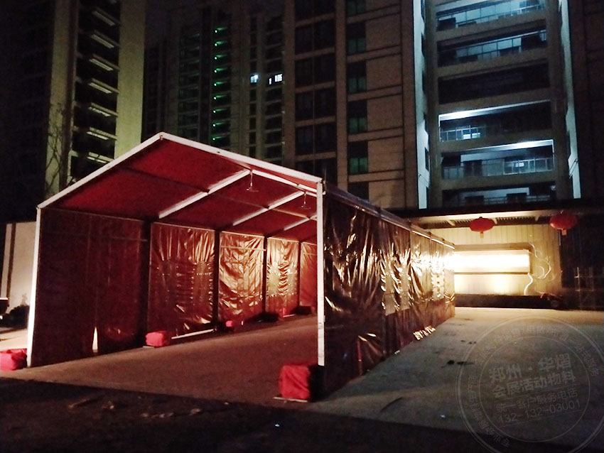 如圖,搭建在樓房前面的紅色篷房,顯得格外的喜慶,交房是一個(gè)喜慶而又神圣的節(jié)日,業(yè)主懷著愉悅的心情,來(lái)到樓盤(pán)處,看見(jiàn)紅色的篷房心情會(huì)更加的愉悅,紅色寓意著紅紅火火,寓意著未來(lái)在住房子的時(shí)候能夠日子紅火,日子開(kāi)心。在璀璨熙湖交房中的篷房搭建,華熠僅僅用了半天時(shí)間就把紅色的大篷房搭建完成,可見(jiàn)華熠不僅有著搭建師傅為您搭建,在時(shí)間上也如約提前完成,為您節(jié)省了不少時(shí)間。不僅如此華熠還有著其他類型的篷房租賃服務(wù)。如:鄭州透明篷房租賃、鄭州玻璃篷房租賃、鄭州尖頂篷房租賃、鄭州球形篷房租賃等眾多類型供您選擇,以此來(lái)滿足您不同的活動(dòng)現(xiàn)場(chǎng)需求。