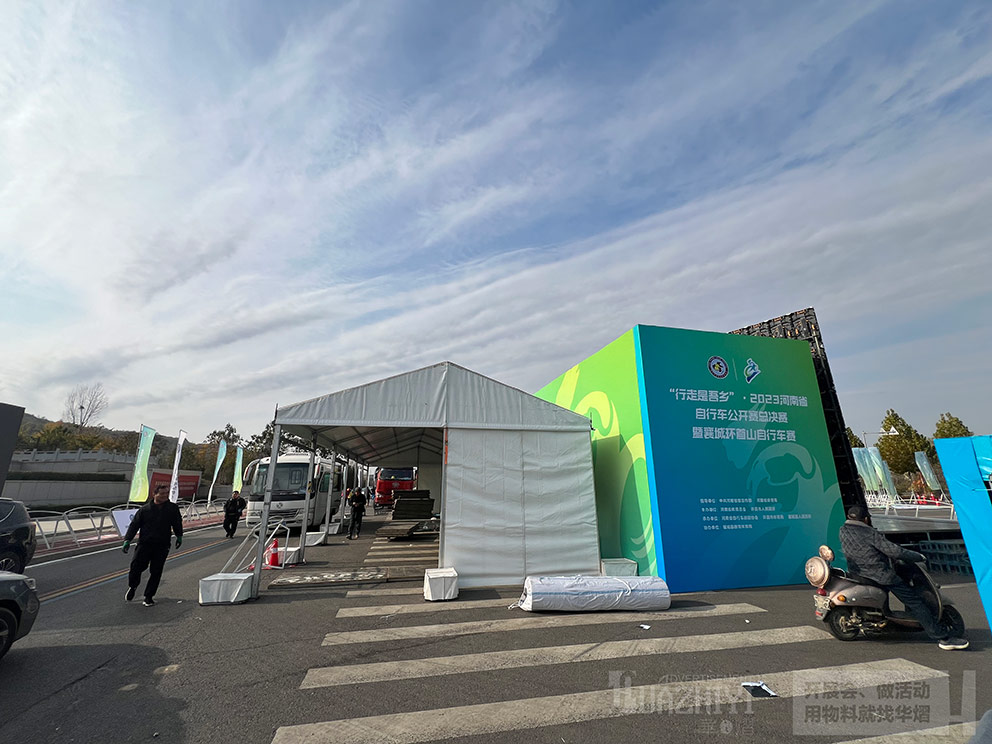鄭州許昌活動篷房出租2023自行車公開賽現場,由此我們可以得知,不同的用途要選擇不同的使用方式,不管您是租用還是購買篷房,都歡迎聯系鄭州華之熠篷房公司,團隊將全心全意為您服務。