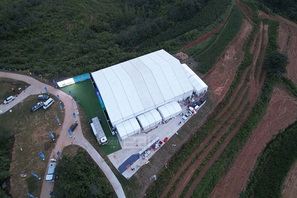 陽光下,純白的篷布熠熠生輝,仿佛是大自然中純凈的云朵降落人間,為活動現場披上了一襲圣潔的外衣。其內部空間布局合理,設施齊全,無論是高端商務會議、浪漫婚禮慶典,還是戶外展覽、音樂節現場,都能完美適配,滿足不同活動的需求。