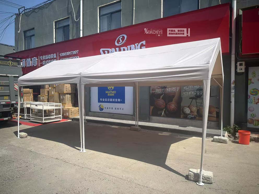 尖頂篷房的設計,藏著對自然的敬畏與巧思。許昌篷房出租公司的尖頂篷房頂角角度通常在60度左右,既能保證排水效率,又能讓內部空間顯得高挑開闊。它的顏值也很出眾,白色篷布搭配尖頂,自帶童話感,婚禮、市集等偏浪漫的場合尤其青睞。