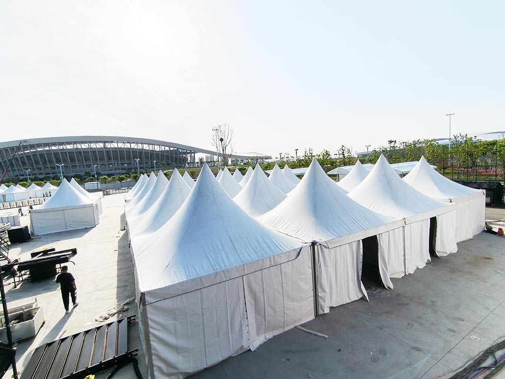 篷房的許多部件在倉庫就已完成預裝配:斜撐與橫梁的角度提前校準,篷布上的卡扣位置預先固定,甚至連防風繩的長度都按場地類型分檔備好。現場搭建時,工人只需將預裝好的部件整體對接,省去大量調試時間。