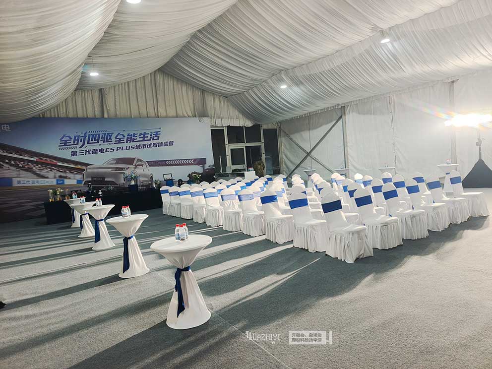 一場優質的試駕會,離不開細節處的品質把控。商丘篷房出租憑借精準的物料適配、專業的布場能力,為經開試駕場藍電E5 PLUS試駕會筑牢了場地基礎,讓參與者在舒適有序的環境中深度感受車型優勢。
